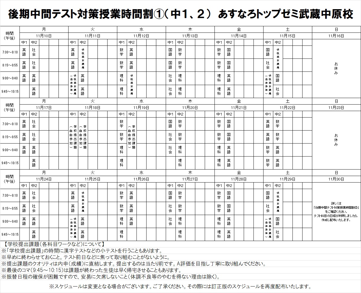 テスト当日は朝6時30分からその日のテスト科目を最終確認してもらいます。