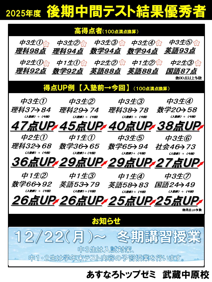 上記の期間で小3生~中2生の無料体験を募集しております!