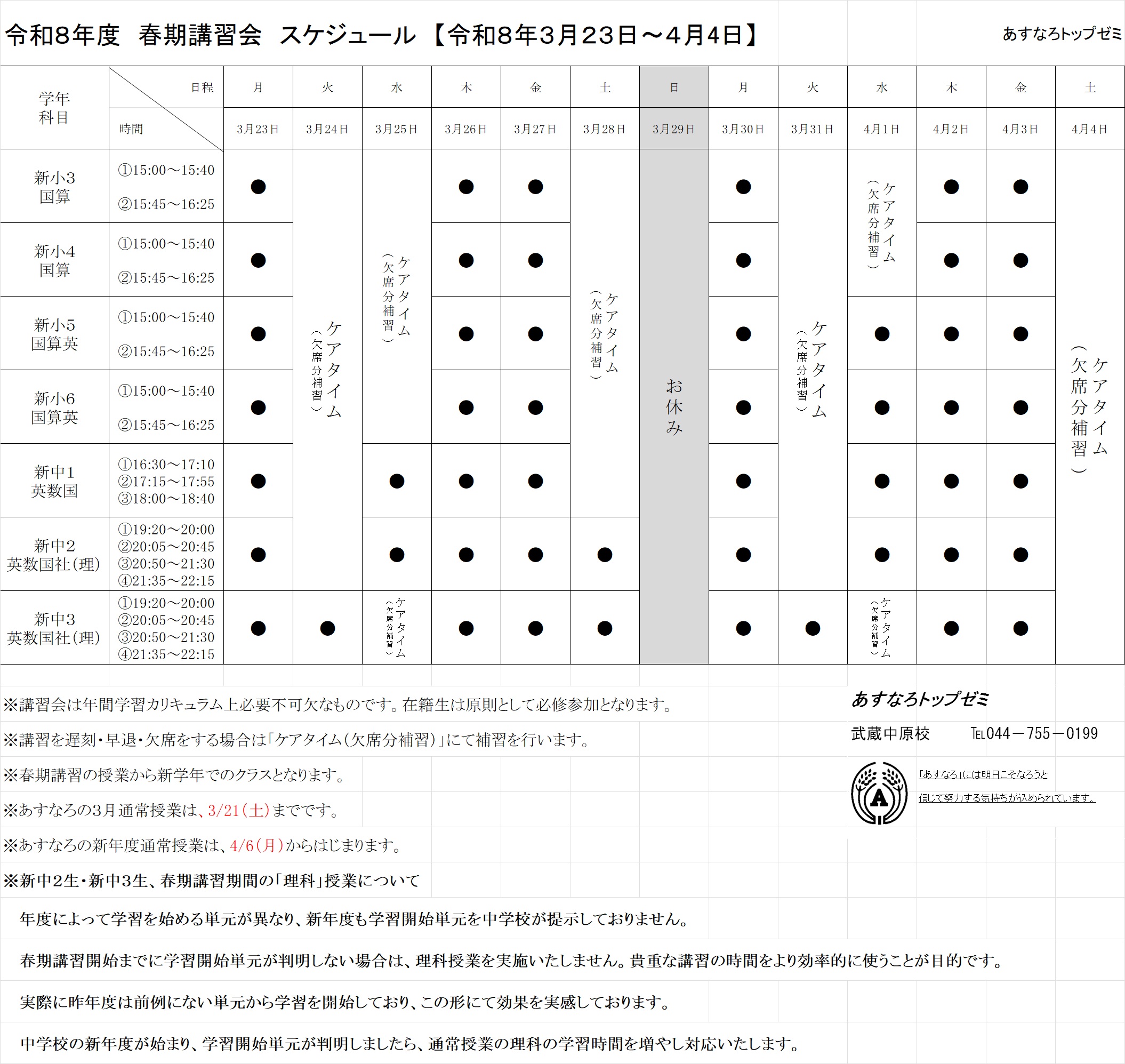 ①「春期講習+4月授業」