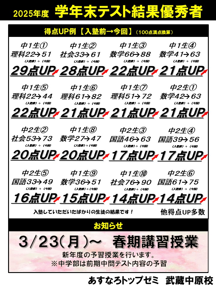今回は入塾していただいたばかりの生徒の【得点UP】をまとめてみました。