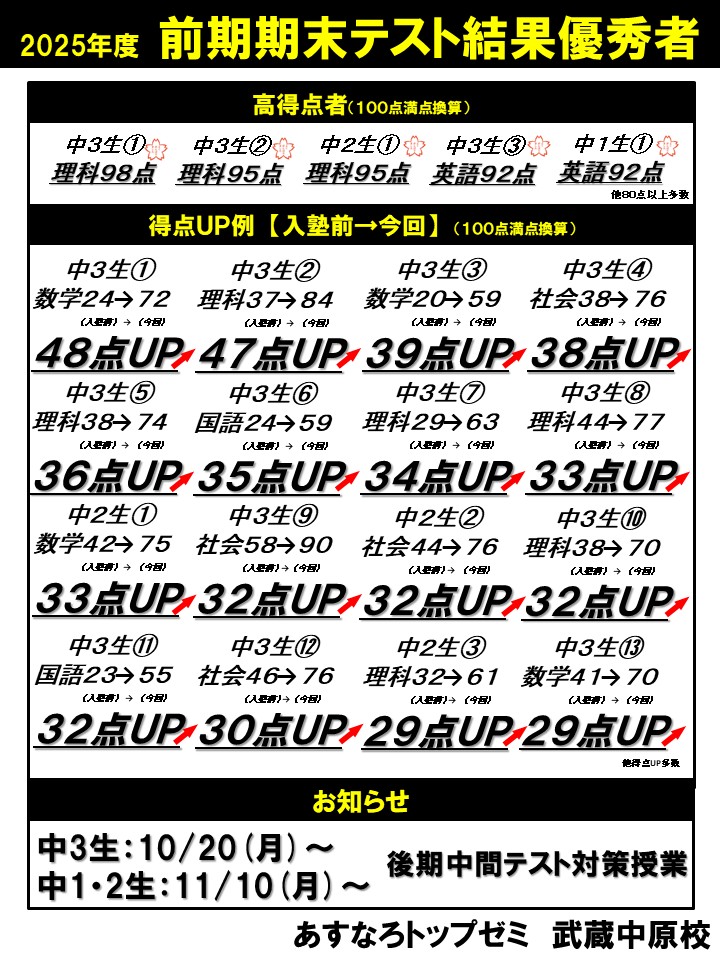 武蔵中原校、在籍生徒の頑張りをご覧ください。